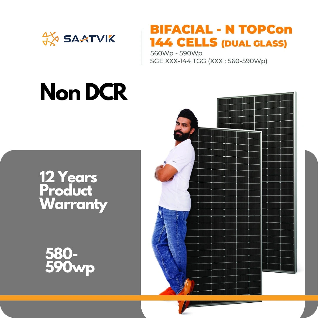 Saatvik Solar 580 Wp DCR Bifacial n-type TOPCon Solar Panels