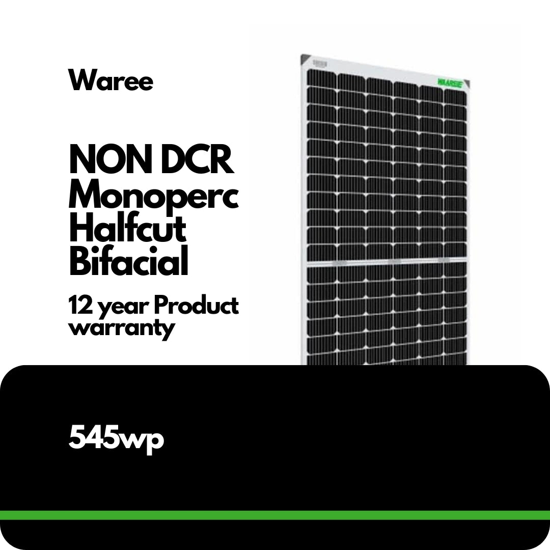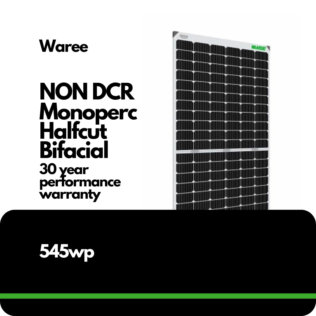 Waree Solar Panel Non DCR Bifacial Mono Perc Halfcut 545W